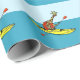 Ett lustigt exempel på en tecknad giraffe i en kajak. Den roliga kajakande giraffen bär ett rött liv jacka. Det är länge tunga hänger ut eftersom det koncentrerar sig på att balansera den lilla gulten canoe.