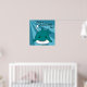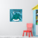 Rolig blå och vit tecknad haj med små ovala svarta ögon och en rad spetsiga vita tänder. Bakgrunden är ljusa och mörka blåa ränder som strålar ut från det övre vänstra hörnet. Ovanför hajen står orden Ha en Jawsome dag i svart text.