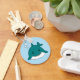 Rolig blå och vit tecknad haj på blå bakgrund.