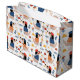 Tecknad hund ansikte, blommor och hej hälsning, sömlöst mönster med färgbilder. Köp det här för dig själv eller som en underbar gåva till dina hund-älskande vänner. Anpassa texten "Födelsedagshälsningar", ändringar av teckensnitt och färg.