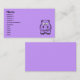 tecknad-hippo söt, vänlig lila visitkort