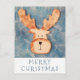 Stort vykort för Tecknad av Hjort av chef för Reindeer God jul Helgdag. Rena på en blå och vit is med God jul.