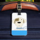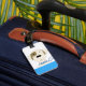 En roligt för ett hund älskare, sött tecknad hund med blått halsband. Anpassa med önskad information.