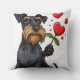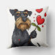 Tecknad hund med en blomma kudde