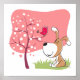 Tecknad hund Valp Fågel Blomma Blomma Rosa Vår Poster