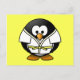 Tecknad Judo Penguin Gult Background Vykort