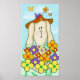 Kanin i sin röda, floppiga landsbyhatt tecknades med pennan och skannades sedan in i datorn där den färglades.