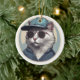 Tecknad katt med solglasögon julgransprydnad keramik