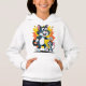 Roligtens tecknad T-shirt-design med en lekfull katt som jagar en mus med ost. Ljusa färger, tecknad, explosionsbakgrund och dynamisk teckning stil gör den till perfekt för avslappnadens bära.