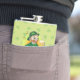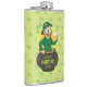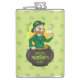 Tecknad leprechaun i en depån i guld som håller en fickplunta