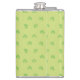 En kolv med en Illustration av ett leprechaun som lektar på grönt kostym, en bockslips och en bowlareare hatt medan sitta ligger i en pocka o’ guld och som håller en punkt av öl, med regn av gult, grönt och orange i bakgrunden. Bilden placeras över en sömlös ljust grönt bakgrund med schampar. En perfekt som firar Saint patrick's day!