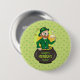 Knapp med en Illustration av en leprechaun med leprechaun i grönt kostym, en bockslips och en bowlareare hatt medan sitta ligger i en pocka o’ guld och med en punkt av öl, med regn av gult, grönt och orange i bakgrunden. Bilden placeras över en sömlös ljust grönt bakgrund med schampar. En perfekt som firar Saint patrick's day!