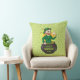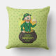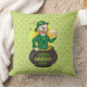Tecknad leprechaun i en depån i guld som håller en kudde