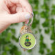 Nyckelkedja med en Illustration av en leprechaun med leprechaun i grönt kostym, en bockslips och en bowlareare hatt medan sitta ligger i en deg o’ guld och med en punkt av öl, med regnbåge i gult, grönt och orange i bakgrunden. Bilden placeras över en sömlös ljust grönt bakgrund med schampar. En perfekt som firar Saint patrick's day!
