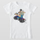 Den här konstruktionen är en tecknad på en motorcykel. Mannen rider av och tittar bakom honom. Han har en röd kärlek-hjärttatuering på arm. Den här tecknaden på en motorcykelkonstruktion ser underbar ut på den här Girls T-Shirt