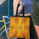 Den här funkyn med mandalablommans design har gult i tecknaden stil. Matchiga geometriska visualer för den moderna hippien eller älskare i det pulserande färg!