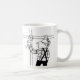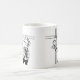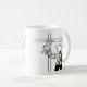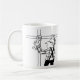 Skaffärens mugg. Svart och vit design med en roligt som illustrerar en skafflare som arbetar med sin byggnadsställning.