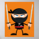 Tecknad Ninja Warrior med två katana Poster