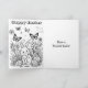 Påsk-kort för personlig tecknad Påskhare med en invändig färgsida. Cute Bunny sitta i fullt av gräs från rosa och blåa blommor och Påskägg.