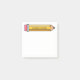 Fyrkantiga anteckningar med ditt namn i ett handskrivet teckensnitt på en tecknad som illustrerar en penna med en rosa suddgummi. Back to school anteckningar för studenter och lärarinna med en penna för tecknad av kort och knubbig.