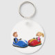 Tecknad pojke och flicka i Bumper Cars Nyckelring