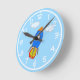 Tecknad raket i blå himmel för barnkammardekor rund klocka