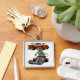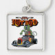 Tecknad retro hot rod fyrkantig silverfärgad nyckelring