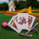 En kvinna som kör på väg i tecknad stil. Den här designen ser ut att vara effektiv på de här spelkorten