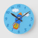 Raket och moln av tecknad med tidningspapperseffekt på teckning. Ursprunglig design. Anpassade väggur. Gift idé om för barn som kärlek science-fiction och rymden äventyr