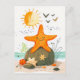 Tecknad sjöstjärna på sten vid havet vykort
