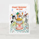 Ett födelsedagskort för en 12-åring med katter som sjunger "Grattis på födelsedagen till dig!" och en födelsedagskalas med godis, från en vismisk vattenfärgsillustration av Judy Adamson. Du kan ändra det inre meddelandet om du vill.