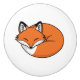 Stiliserad tecknad teckning av en hopringlad sovande räv.