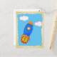Tecknad Space Rocket i Blå himmel Torn Papper Vykort