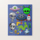 Tecknad Space Utomjordingars Grays UFO Art Collage Pussel