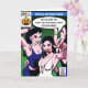 Skicka det här fulla anpassadet hälsning golden stil tecknad-kortet från de tre allrande vampyr dam till ditt favoritoffer! Alla fläkt av tecknader för tidningspapper för guldåldern där färg bildades av små prickar kommer att göra kärlek detta som en överraskning för Halloween. Ändra texten i tal-ballongen på kortets framsida till ett hälsning som mottagaren kommer att känna till är bara för dem Du kan också ändra datumet till deras födelsedag för ett heltäckande födelsedagskort för anpassadet.