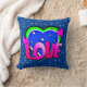 Tecknad Stil Pop Art Retro Blue Rosa Grönt KÄRLEK Kudde