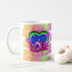 Tecknad Stil Pop Art Retro Mauve Grönt KÄRLEK Rain Kaffemugg