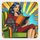Tecknad Stil-popkonst Kvinnoläsning Fyrkantigt Klistermärke