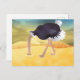 Tecknad struts med huvud i sand vykort