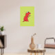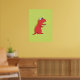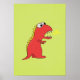Kyldinosaurer poster ut med en färgstark illustration av en röd tecknad T- Rex dinosaur med ett fint andetag på gröntens bakgrund. Den här söta utskriften har levande färg och är lämplig för för barn och även för vuxna barn. :