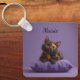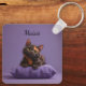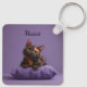 Tecknad Tortoiseshell Kitten på Lila Cushion Nyckelring