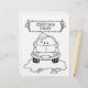 Målarbokssida. Tecknad bil tvättas med rullborste och vattensprut. Anpassad text.
