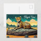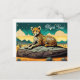 En vild tecknad stil leopard ligger på en sten vid öken vykort.