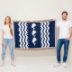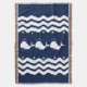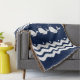 Tecknad White WHALE på medelblå bakgrund Design by Sandy Closs valales nautisk marin jakt på havsstranden vatten