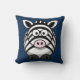 Den här söta tittar tecknaden zebra ser underbar ut på en marin blå bakgrund. Det här är en roligt designad dekorativ kudde som skulle se bra inte bara i ett barnrum eller i ett familjeråd, utan också på ett hemkontor eller i vilket rum som helst i hemmet som du ville injicera lite roligt i.