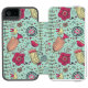 Tecknadblommönster med fåglar incipio iPhone wallet skal