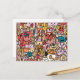 Postkort för tecknade figurer Hand plockade Toss Mönster. Färgat mönster med olika roliga och roligt handritade tecken. Underbar för barn och ungdomar.