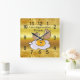 tecknade figurer stekt ägg med stort leende fyrkantig klocka