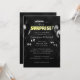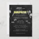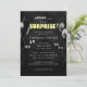 Denna anpassade festinbjudan har ett roligt överraskningsfesttema. Roliga tecknade ögon i olika former är placerade på vardera sidan av textområdet över en svart bakgrund för att representera ett mörkt rum med släckta lampor. Svarta festballonger är placerade på vardera sidan av inbjudan för att likna ballongskuggor. Det är perfekt för en välkomstfest, födelsedagsfest eller annan speciell tillställning.