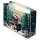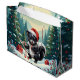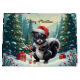 Tecknaden Skunk för jultomten - Lustigt Santa Hat Skunk med Candy cane och gåvor. Ge helgdag glädje med den här vackra julskunk-tecknaden! 🦨 som har vunnit en julhatt och hållit en candy cane och röd dekoration, står den här svarta och vita skunden i en snövinter-scen med dekorerad, vintergrön träd och festlådor. Perfekt för djur älskare, tecknad fläkt och alla som tycker om roligt och sött helgdag.